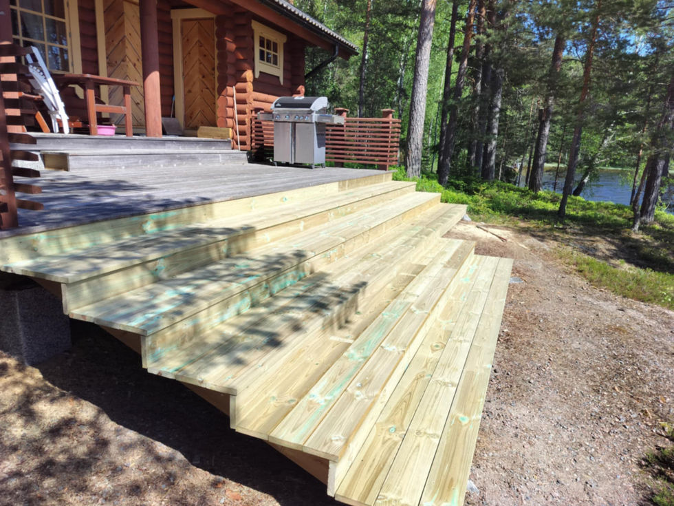 Vanhojen terassien kunnostus ja uusien rakentaminen alusta alkaen. Maan tasoitus, terassin perustus, lasitus